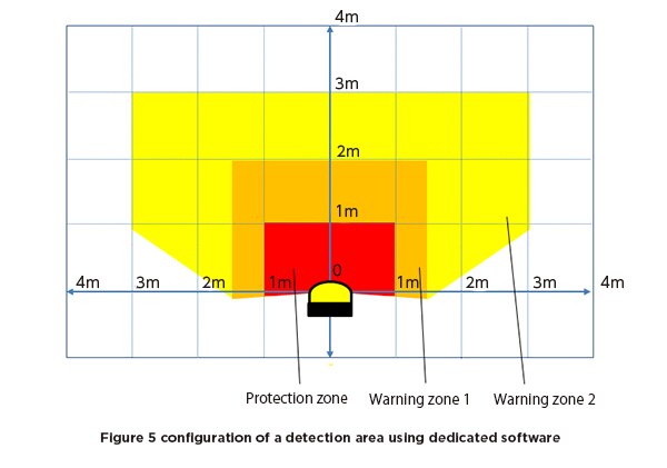 Laser scanners generally use infrared lasers, which are invisible to the human eye, to detect people.The distance to the detected object is calculated by measuring the time it takes for the laser beam emitted from the laser scanner to hit the detected object (a person) and reflect back to the scanner (Figure 3). Laser scanners also detect where a person is located in the warning or protective zone by calculating the distance by emitting laser beams in a fan shape at slightly different angles.