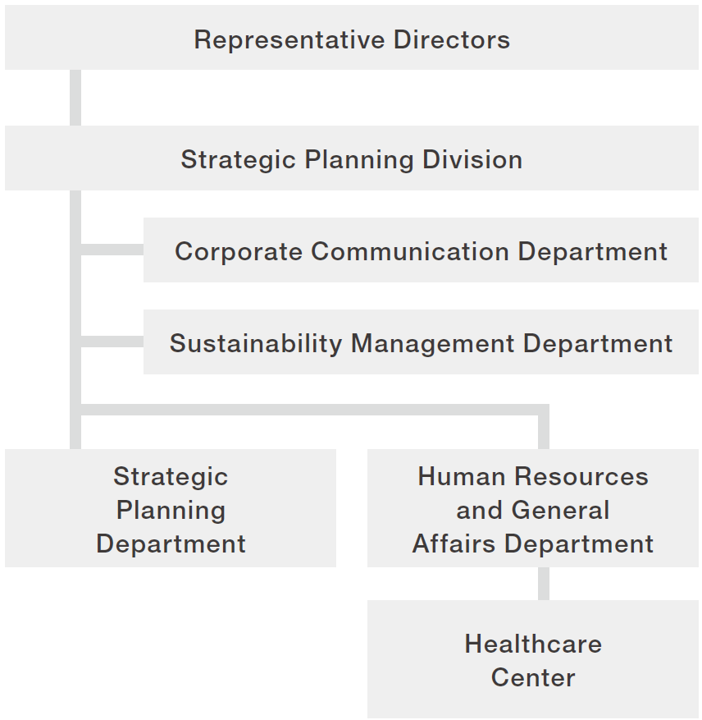 In FY2023, a new Strategic Planning Division was established as an organization under the direct control of representative directors to work together to draft management strategies and personnel strategies. The new division, working in coordination with related departments, leads the formulation of long-term visions, medium-term management plans, sustainability KPIs, management and personnel strategies, and the managing of our management resources. Critical matters are referred to the Top Management Meeting, whose policy decisions are reported to the Board of Directors.